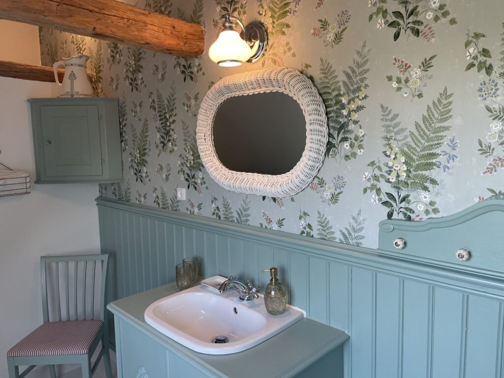 I vinteren 2024-2025 satte vi vores nye lille ferieperle i stand. Der blev etableret nyt toilet og bad, da mange af vores gæster tidligere har efterspurgt eget badeværelse. Stedet er dog stadig indrettet med gamle møbler, og badeværelset er nænsomt istandsat med høje paneler og masser af små detaljer.